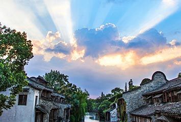 烏鎮地處桐鄉市北端,京杭大運河西側,西臨湖州市,北界江蘇吳江縣,為兩省三市交界之處。作為首批中國歷史文化名鎮、中國十大魅力名鎮、全國環境優美鄉鎮、國家5A級景區,烏鎮素有“中國最后的枕水人家”之譽。